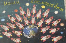 1 нче кечкенәләр төркеме балаларының "12 нче апрель - Космонавтлар көне" уңаеннан ясалган стена газетасы.