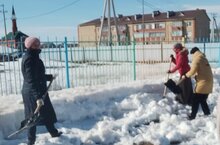 Коллектив белән территорияне кардан арындыру максаты белән, кар оемнәрен тараттык.