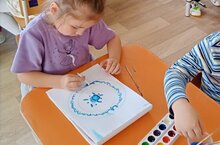 Рәсем шөгылендә гжель бизәкләре белән тәлинкәләр бизәдек.