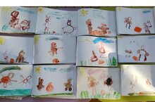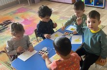 Уртанчылар төркемендә рәсем шөгеле. Тема: "Аю баласы уянды". Балалар белән аю баласының гади хәрәкәтләрен курсәтеп рәсем ясарга өйрәндек, бер юнәлештә буяу күнекмәсен ныгыттык.