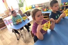 Икенче кечкенәләр төркеме балалары рәсем шөгылендә кояш рәсемен ясарга өйрәнделәр.