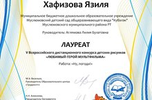 Воспитанники подготовительных групп Хафизова Я., Тазов Р.,Газтдинов Р. стали лауреатами V Всероссийского дистанционного конкурса детских рисунков "Любимый герой мультфильма".