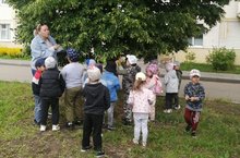 "Урман- илебез байлыгы" атналыгы кысаларында зурлар төркеме балалары белән урманда үсә торган кайбер агачлар: каен, нарат һәм юкә агачлары белән таныштык.