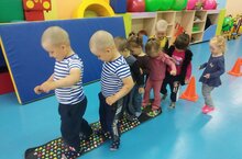 С ребятами из средней группы провели беседу о пользе спорта, укрепили подошвы ног на массажных коврах, сыграли в спортивные игры.