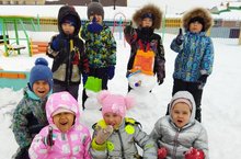 Зурлар төркеме балалары яз көне дә кар бабай ясыйлар.