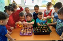 Опытно - исследовательская деятельность с луком в старшей группе. Лук, купленный в магазине поставили в стаканчики с водой, а домашние луковицы маленькие по размеру посадили в грунт. Конечно же, во втором варианте видим большую разницу.