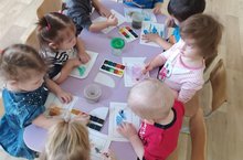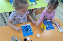 Беренче кечкенәләр төркеме балалары рәсем эшчәнлегендә кисточка белән эшләүне дәвам итәләр.