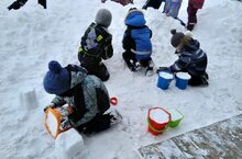 Прогулка в старшей группе. Лепка фигур из снега при помощи ведерок, развитие творческого воображения детей.
