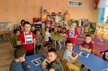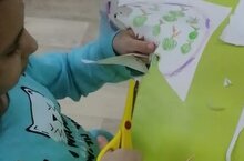 Уртанчылар трөкеме балаалры вак кул моторикасын үстерү максатыннан кайчы белән үзләре ясаган алмаларны кистеләр.