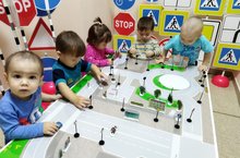 Беренче кечкенәләр төркеме балалары белән юл йөрү кагыйдәләрен өйрәнү буенча тематик уеннар уйнадык.