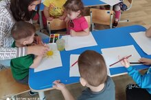 Дети первой младшей группы на занятии рисования изучили форму и цвет солнца.