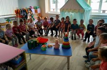 В рамках года родных языков и народного единства в подготовительной к школе группе провели занятие по физической культуре. Упражняли детей в равномерном беге и беге у ускорением, знакомили с прокатыванием обручей.