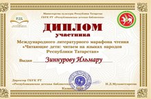 Воспитанник старшей группы Зиннуров Ильмар награжден дипломом Министерства культуры Республики Татарстан за участие в международном литературном марафоне чтения "Читающие дети: читаем на языках народов Республики Татарстан".