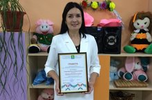 Воспитатель МБДОУ" Кубэлэк " Гиздатова Регина Валентиновна по итогам муниципального тура конкурса" Воспитатель года - 2020 " была удостоена Почетной грамоты Управления образования.
