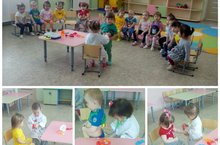 Бүген икенче кечкенәләр төркеме балалары аю баласына прәник әвәләп ясадылар. Нәниләр рәсемнәр карарга, тәрбиячене ишетергә һәм аңларга, биремнәрне үтәргә өйрәнделәр. Шулай ук балалар пластилин белән эшләү серләренә төшенделәр..