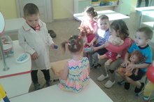 “Ләйсән” балалар бакчасының икенче кечкенәләр төркеме “Хастаханә” сюжетлы-рольле уенын өйрәнәләр.Сюжетлы-рольле уеннар туган телне өйрәнүдә бик мөһим урын алып тора. Һәм сүзләрнең дөрес әйтелешен җиңел үзләштерергә булыша.