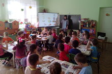 Детям подготовительной группы очень нравятся занятия на русском языке. Один день недели – среда, посвящен этому языку. Дети целый день играют и занимаются только на русском языке. Благодаря этому у детей обогащается словарный запас и развивается связная речь.