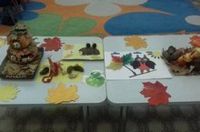 Икенче кечкенәләр төркемендә балаларны төрле яктан үстерү өчен барлык шартлар тудырылган. Балаларның иң яраткан эшчәнлекләре: рәсем, әвәләү, кисеп ябыштыру. 10 октябрь көнне кисеп ябыштыру эшчәнлегендә балалар, тәрбиячеләре өйрәткәнчә, геометрик фигуралардан яшелчә, җиләк-җимеш җыеп ябыштырдылар.