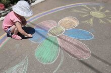 В детском саду прошел День рисования на асфальте. В этот день асфальт для детворы стал большим полотном для творчества и воображения. Рисование на асфальте - это не только веселое занятие для ребят на улице во время прогулки, но и творческое, и познание окружающего мира. Рисовать цветными мелками, да еще не на бумаге, а на асфальте — это счастье для маленьких художников. Воспитанники с энтузиазмом взялись за разноцветные мелки, и уже через несколько минут асфальт под ногами превратился в холст, заиграл яркими красками. Ребята с большим удовольствием рисовали солнце, небо, цветы, бабочки, домики. Разноцветные мелки в руках юных художников становились все меньше и меньше, а асфальт расцветал чудесными и удивительными рисунками. И вскоре вся площадка перед зданием детского сада превратилась в большую художественную галерею. Необычный праздник подарил всем участникам массу положительных эмоций, а главное, добрые рисунки на асфальте продолжают радовать детей и родителей.