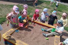В МБДОУ "Ляйсан" дети младшей группы любят играть в песочнице. Цель игры: формиравть представление детей об объектах неживой природы, в частности о песке, воспитывать познавательный интерес к ближайшему окружению. Игра в песочнице способствует развитию координации движении рук.