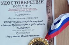 « Ләйсән “ балалар бакчасы коллективы тагын бер җиңүгә ия булды! Бөтенрәсәй смотр- конкурсы “ Образцовый детский сад” конкурсында җиңүче булды! Медаль һәм удостоверение белән бүләкләнде. Коллективның бердәм булувы, дус һәм көчле булувы менә шундый җиңүләр алып килә! -