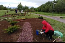 «Ләйсән” балалар бакчасы кызлары Җиңү паркында яран гөлләр утырту чарасында катнаштылар. Гөлләр матур итеп чәчәк атып тирә-юнне матурлап торырлар.Работники детского сада « Ляйсан» посадили в парке победы цветы. Они своими красивыми цветами будут радовать глаз. -