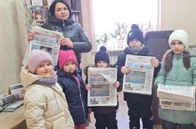 В конце экскурсии каждый из ребят получил подарок: буклет и несколько номеров газеты с которым мальчишки, девчонки с сфотографировались.