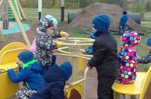 "Миләшкәй" балалар бакчасы коллективы якын тирәдәге территорияне коелган яфраклардан арындыра.