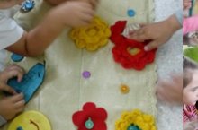 "Миләшкәй" балалар бакчасының 2 кечкенәләр төркеме балаларының вак кул моторикасын ныгыту,төсләрне өйрәнү,кабатлау,сүзлек запасын арттыру максатыннан панно бизиләр. /В МБДОУ "Миляшкай" дети 2 мл.группы украшают панно для развития мелкой моторики.