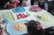 "Миләшкәй"балалар бакчасының икенче кечкенәләр төркемендә "Төрле төстәге уч төпләре" тугәрәгендә традицион булмаган алым куланнып төрле тостәге комнан бизәкләр төшерделәр.Тугәрәкне Шакирова Эльза Уйдат кызы алып барды.