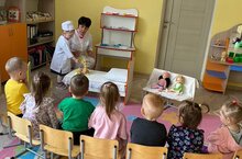 "Һөнәрләр һәм инструментлар" тематик атналыгы кысаларында кече төркем балалары табиб һөнәре турындагы белемнәрен тулыландырдылар. Тәрбияче Шәрәфетдинова Гүзәлия Фәнис кызы балаларга әлеге һөнәр турында сөйләде, балалар кызыксынып тыңладылар, медицина инструментларын карадылар. "Больница" сюжетлы-рольле уенда балалар, уен атрибутларын оста кулланып, табиб һәм пациент ролендә чыгыш ясады.