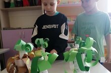 Бүген мәктәпкә әзерлек төркеме каен турында бик күп яңалыклар белделәр, оригами ысулы белән каен агачын ясадылар. Кул эшләрен янәшә куеп каен урманын булдырдылар. -