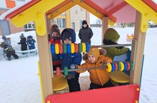 Без саф һавада йөрергә бик яратабыз! Вакытны бик күңелле үткәрәбез, эшсез утырмыйбыз. Тау шуабыз, участоктагы агачларны, анда кунган кошларны күзәтәбез. Кардан бар нәрсәнедә ясап була, ләкин без әле кечкенәләр булгач, гади кар йомарламнары ясап уйныйбыз.