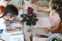 Мәктәпкә әзерлек төркеме рәсем эшчәнлегендә бүлмә гөлләренең күптөрлелеге белән таныштылар; җиңел басымлы гади карандаш белән рәсем ясадылар, төсле карандашлар ярдәмендә буяу осталыгын ныгыттылар.