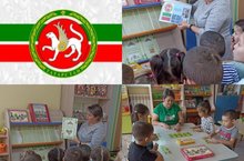 В рамках Дня Российского флага и Дня памяти и скорби (ко Дню начала Великой Отечественной войны 1941 год) в сквере рядом с центральной детской библиотекой для воспитанников ДОУ «Миляшкай» прошла беседа и книжная выставка «За победу любой ценой». Ребятам были представлены новые, иллюстрированные книжки на эту тему. Библиотекарь ознакомила ребят с известными сражениями, рассказала о героических подвигах наших солдат в период войны, показала и рассказала детям о символике нашей страны. Данное мероприятие также напралено для развития интереса к чтению.