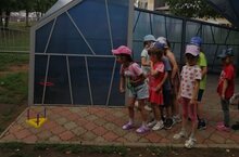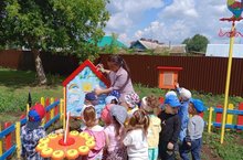«Метеостанция» мәйданчыгындагы приборлар белән кечкенәдән үк танышабыз. Балалар флюгер һәм кояш сәгате белән таныштылар, флюгер ярдәмендә җил юнәлешен билгеләделәр. Кояшлы, болытлы, яңгырлы көн төшенчәләрен ныгыттылар.