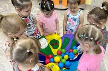 Бүген кечкенәләр төркемендэ күңел ачуларга һәм туп белән уеннарга багышланган тематик көн узды.Туп-баланын беренче уенчыкларның берсе. Балаларның гадәтләре яшь белән үзгәрә, уеннар һәм уенчыклар үзгәрә, ләкин туп безнең белән һәрвакыт кала. Төрле яшьтәге балалар туп белән уйнарга яраталар. Бүген балалар нинди туплар булганын белделәр, алар белән төрле уеннар уйнадылар. Балалар тупларны бик теләп тоттылар, бер-берсенә тапшырдылар, алга ыргыттылар, куып җиттеләр, алар белән сикерделәр. Бугенге көн бик кунелле утте.