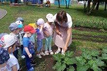 Воспитанники младшей группы познакомились с растениями, растущими в нашем саду. С ними была проведена беседа о том, что растениям полезны вода и солнце, и про то, что овощи полезны для здоровья человека. -