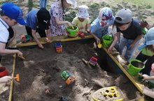 Комлык. Балаларның яраткан урыны. Ком белән уйнаганда балалар төрле уенчыклар кулланалар, шул ук вакытта аларның күзаллаулары үсә, уен күнекмәләре, сөйләм камилләшә. Моннан тыш, ком фикерләүне бик яхшы үстерә: аны бүлеп, үлчәп, төрле сыйлар ясап, кисәкләргә формалаштырып була.