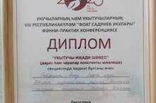 Бүген Мөслим гимназиясе базасында узган VIII республикакүләм "Ф.Садриев укулары" фәнни-практик конференциясендә югары категоряле тәрбиячебез Гайфиева А. З. эш тәҗрибәсе белән уртаклашып, уңышлы чыгыш ясады һәм диплом белән бүләкләнде.
