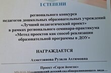 "Иң яхшы педагогик проект" конкурсында катнашып тәрбиячеләребез төрле дәрәҗә дипломнар белән бүләкләнделәр. Котлыйбыз.