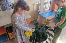 Ребята подготовительной группы вместе с педагогами разработали алгоритм по уходу за комнатными растениями. Каждый день назначаются дежурные, которые с удовольствием трудятся в центре ознакомления с окружающим миром, где круглый год растут красивые комнатные растения. Они по уголку регулярно поливают, рыхлят почву, протирают и опрыскивают листочки. А растения в ответ круглый год радуют ребят пышной зеленой листвой и цветением.