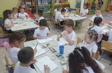 Мәктәпкә әзерлек төркемендә "Безнең яраткан хәрәкәтле уен" темасына рәсем эшчәнлеге.
