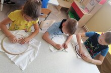 Дети подготовительной к школе группы обучались методам работы с иглой и начинали вышивать.