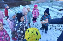 Во время прогулки на свежем воздухе дети наблюдали за первым снегом. Цель: расширять представления о снеге и его свойствах, повышение наблюдательности, логического мышления, любознательности, развитие разговорной речи. -