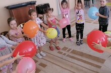 В детском саду день волшебных шариков. Дети танцевали с шарами, играли в веселые игры.