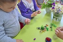 Кечкенэлэр төркемендэ «бөҗәкләр», «файдалы һәм зарарлы бөҗәкләр», «бөҗәкләрне сакларга кирәкме», «күбәләк ничек барлыкка килсә? » дигән темага әңгәмә үткәрдек. Аларның тышкы кыяфәте, буяу, яшәү урыны турында рэсемнэр карадык.