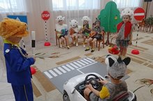 Дети средней группы изучали правила дорожного движения через сказку “Волк и семеро козлят”.