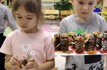 Зурлар төркеме балалары табигый материаллардан пингвин ясадылар. Аның өчен алар шишка, әстерхан чикләвегенең кабыгын кулландылар. Максат: фикерләү, игътибарлылык, иҗади сәләтне, вак кул моторикасын үстерү, пөхтәлек трбияләү, яңа материалны пингвин формасына әверелдерә өйрәнү иде