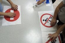Мәктәпкә әзерлек төркеме су һәм ак магнит ак такта өчен маркерлар белән эксперемент ясадылар.